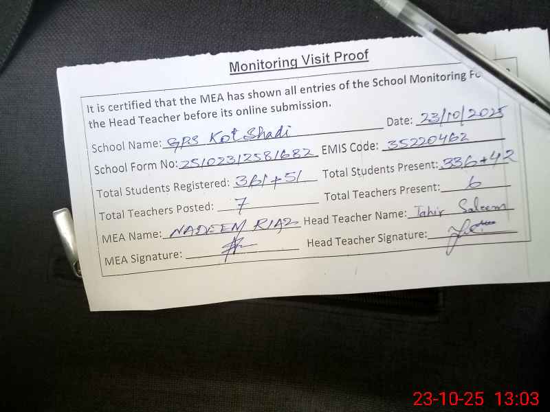| EMIS Code: 35220462 | Name of School: GPS KOT SHADI RAIWIND | |||