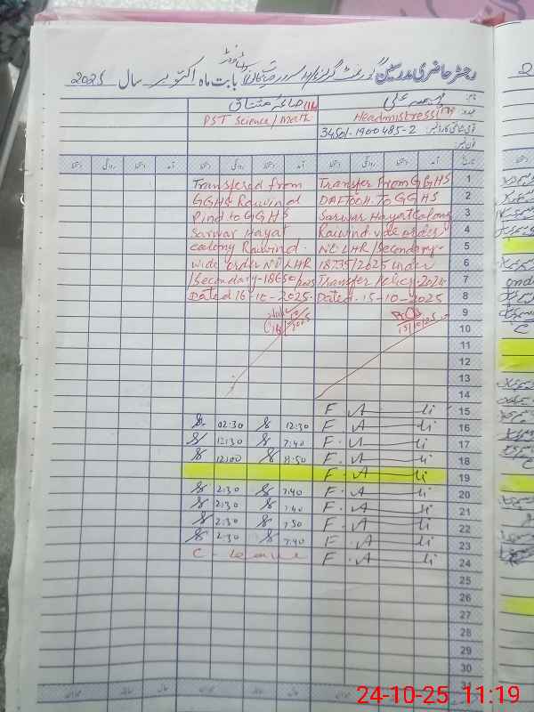 | Remarks (Use Separate Page if Required): EST Afshan Rizwan long absent since 25 November 2024 till date | |||||