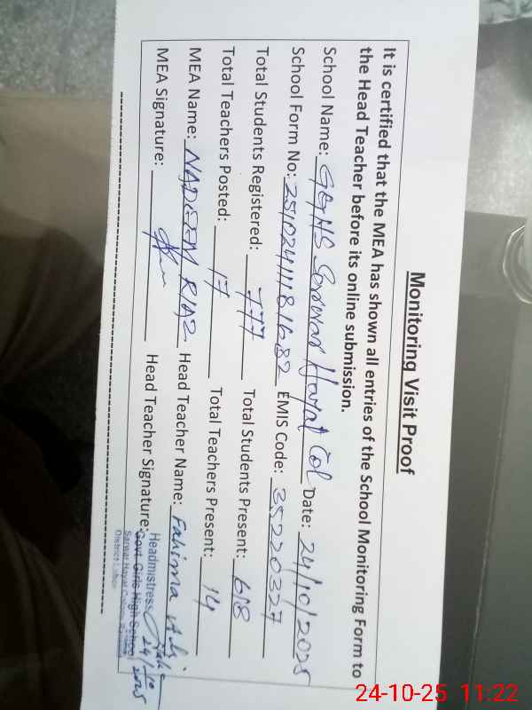 | EMIS Code: 35220327 | Name of School: GGHS SARWAR HAYAT COLONY (Newly upgraded) | |||