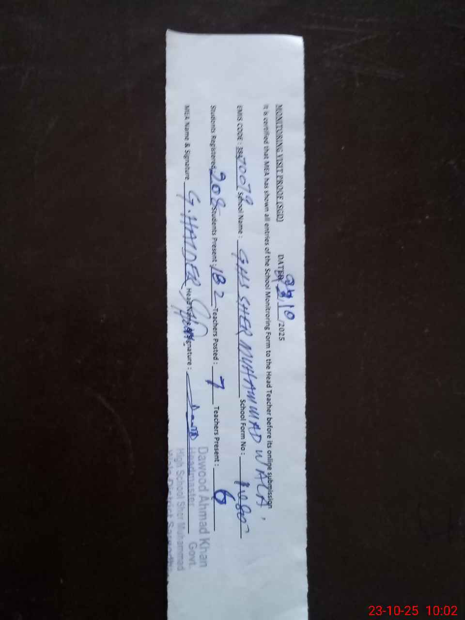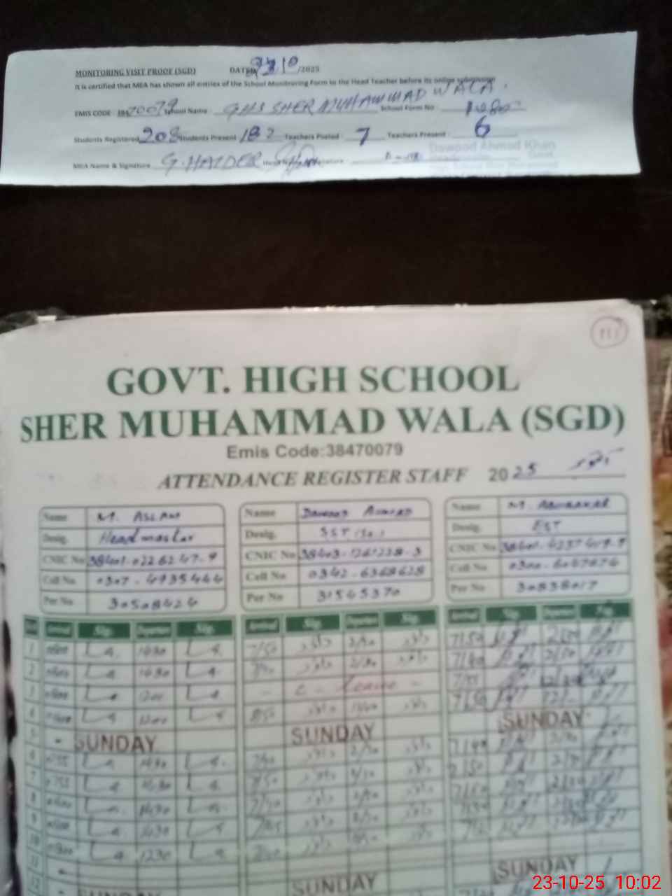 | EMIS Code: 38470079 | Name of School: GHS SHER MUHAMMAD WALA | |||