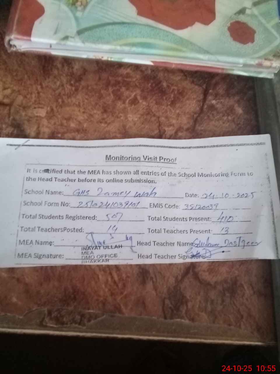 | Certified that this School was Inspected by the Undersigned MEA/DMO Today and the Information Stated Above is as Per Record. | |||||