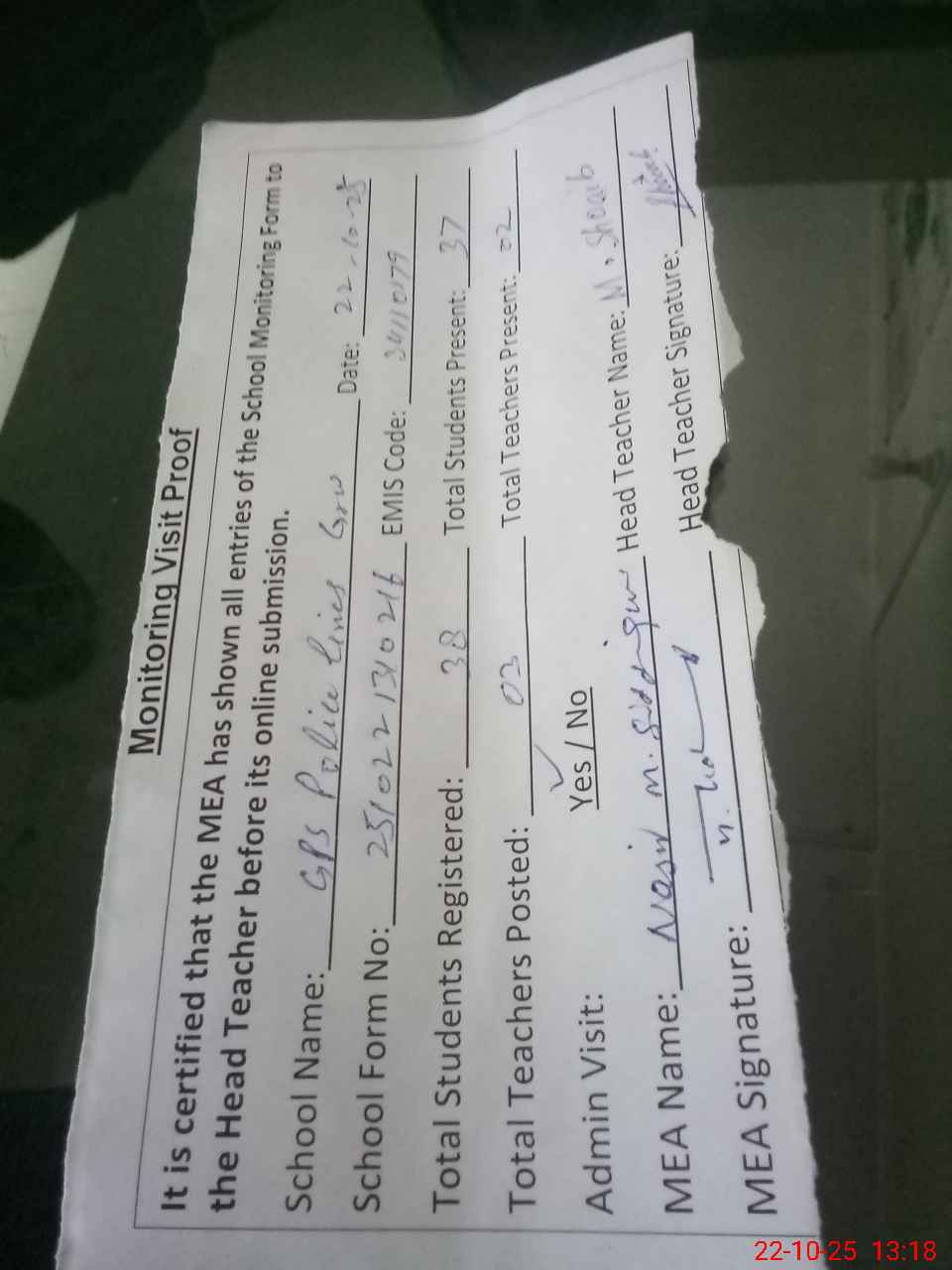 | EMIS Code: 34110179 | Name of School: GPS POLICE LINE | |||