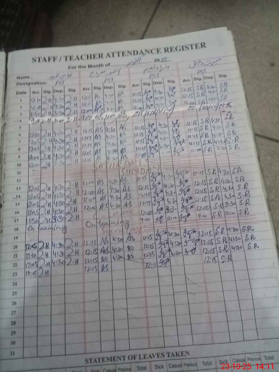 | Name: SA**** AR**** Designation: (School Headmaster's/Headmistress's) PST Phone/Cell Number: 03**** |