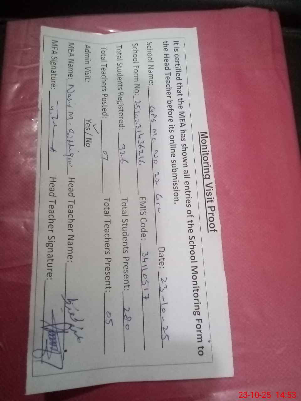 | EMIS Code: 34110517 | Name of School: GPS MC NO.22 | |||