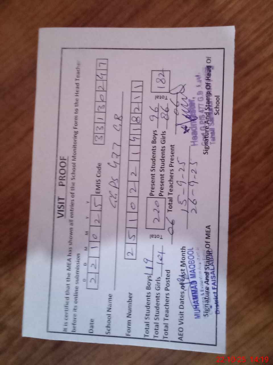 | EMIS Code: 33130247 | Name of School: GGPS CHAK 477 GB EAST MAMUNKANJAN | |||