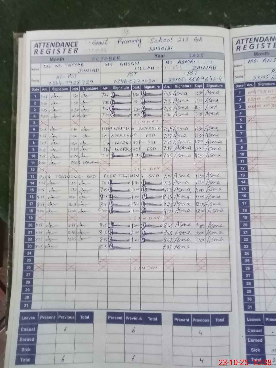 | Name: MTA**** JU**** Designation: (School Headmaster's/Headmistress's) PST Phone/Cell Number: 03**** |