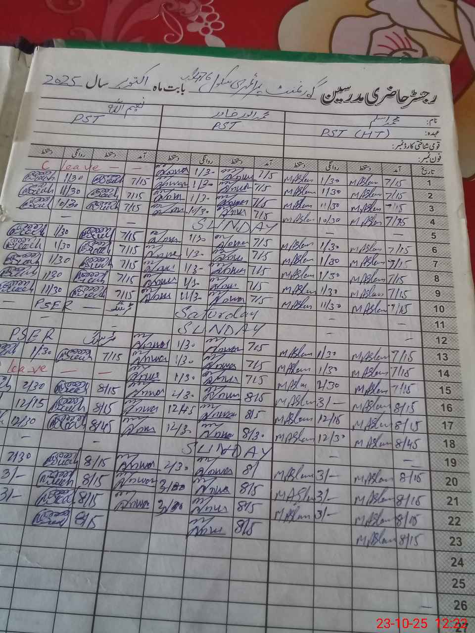 | Name: MU**** AS**** Designation: (School Headmaster's/Headmistress's) PST Phone/Cell Number: 03**** |
