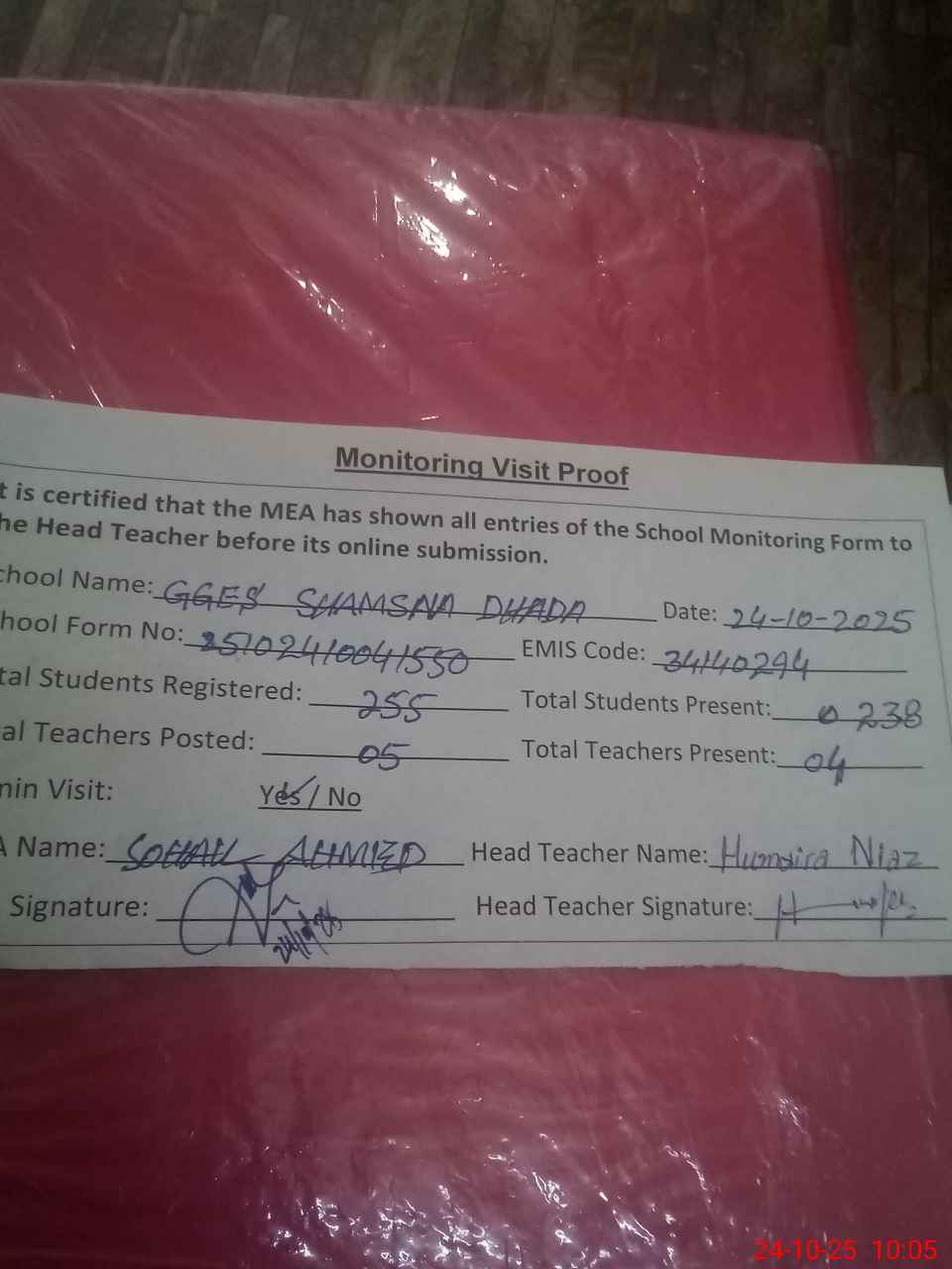 | Monitoring Date: 24-10-2025 | Start Time: 24-10-2025 09:24 AM | End Time: 24-10-2025 10:06 AM | Name of MEA: N-**** Ah**** | |