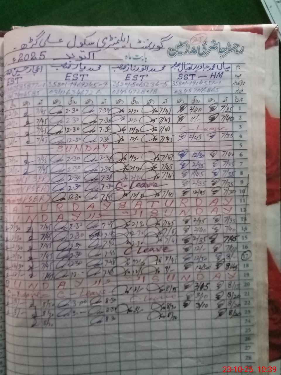 | EMIS Code: 39310071 | Name of School: GES ALI GARH | |||