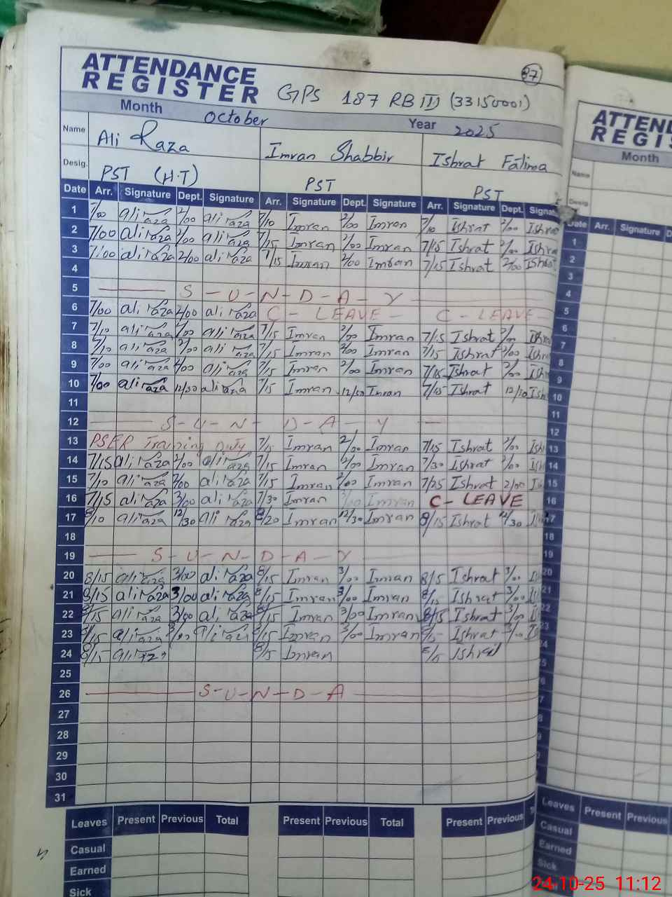 | Leave | Duty | Absent | Maternity | Medical | Ex- Pak |