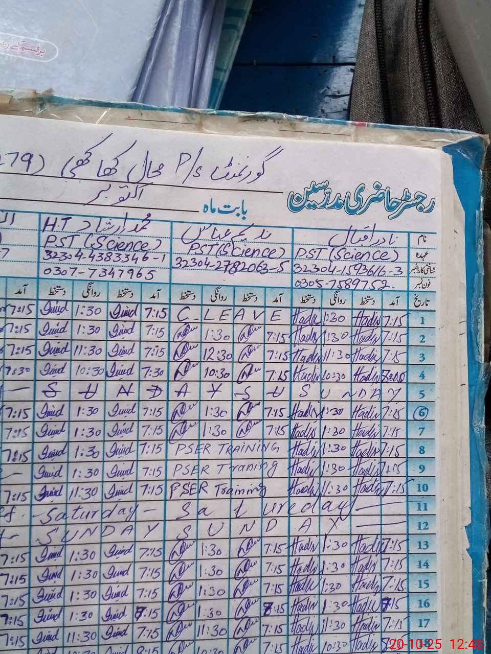 | Name: MAS**** Designation: (School Headmaster's/Headmistress's) PST/PTC/JV Phone/Cell Number: 03**** |