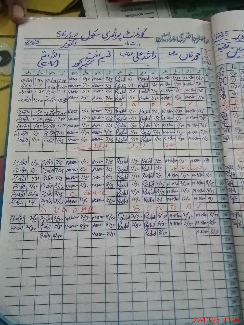 | CNIC | Full Name | Designation | R/C | Absence During Last Calender Month |