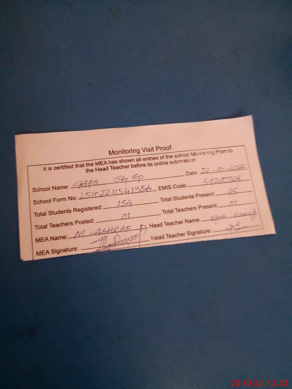 | EMIS Code: 39210326 | Name of School: GGPS 56 SP | |||