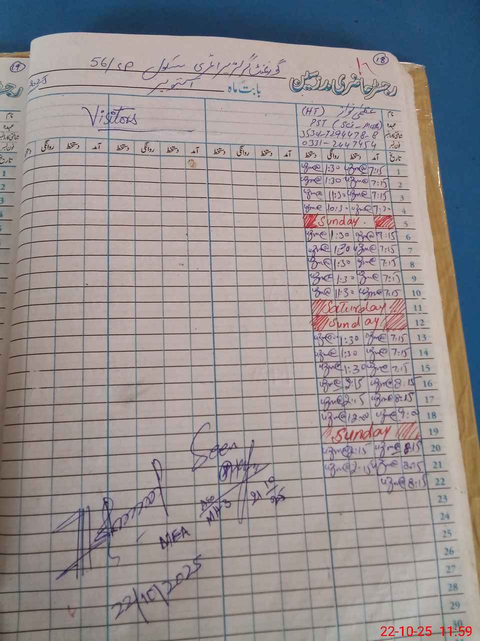 | Name: Uz**** Na**** Designation: (School Headmaster's/Headmistress's) PST Phone/Cell Number: 03**** |