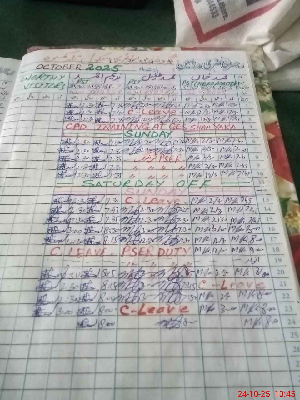 | Leave | Duty | Absent | Maternity | Medical | Ex- Pak |