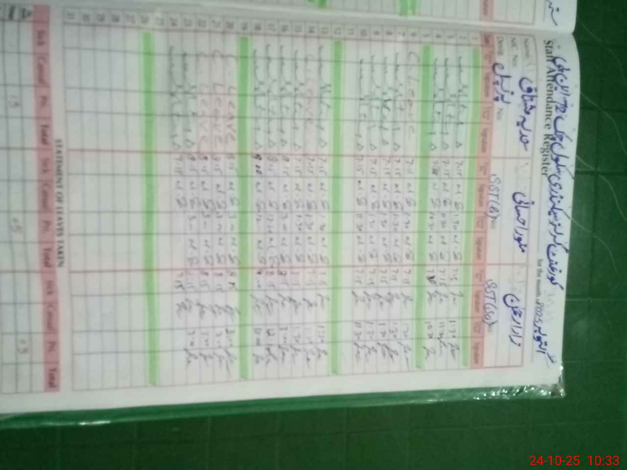 | 36**** | Wa**** Sa**** | PST | Regular | 25 | 0 | 0 | 24 | 0 | 0 | 0 | 0 | 1 | Maternity |