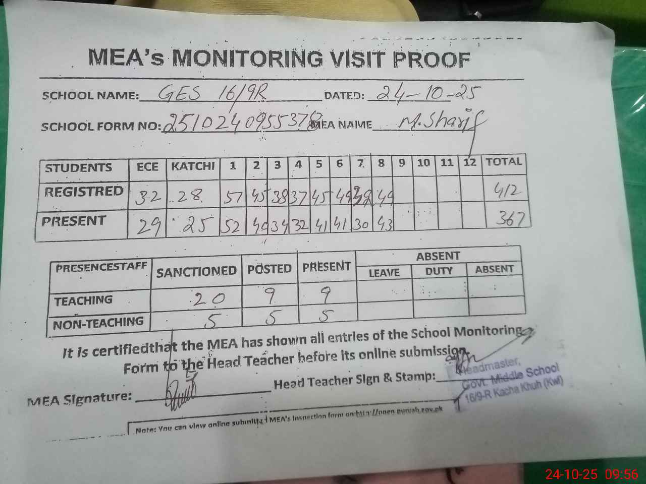 | EMIS Code: 36420073 | Name of School: GES 16/9-R, KACHA KHUH | |||
