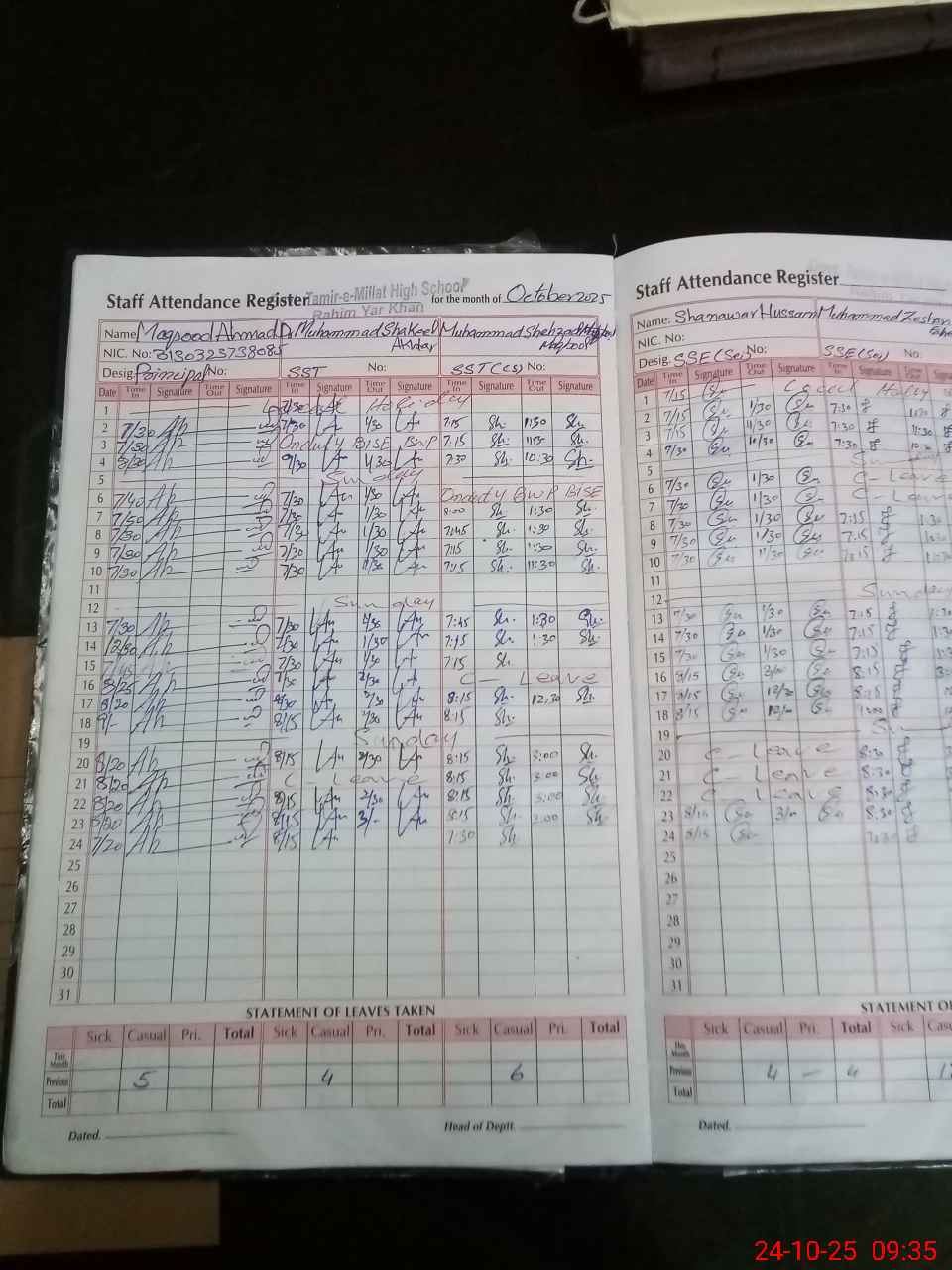 | 31**** | Ah**** Ni**** | EST | Regular | 0 | 0 | 0 | 0 | 0 | 0 | 0 | 0 | 0 | Absent (Un-Authorized) |