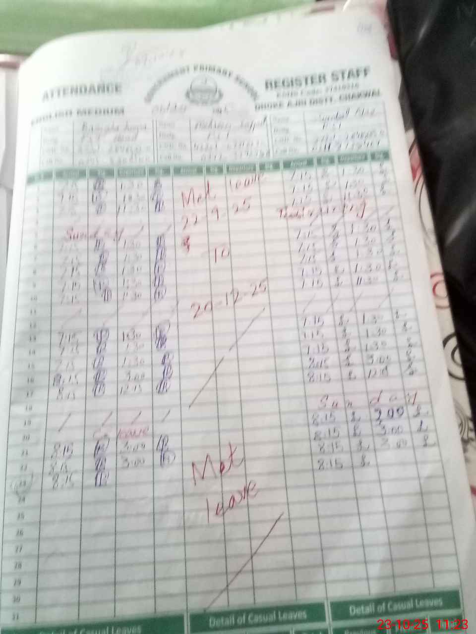 Leave Type | Remarks for today (Leave,Training, Exam,Absent,Late, Other duty) |