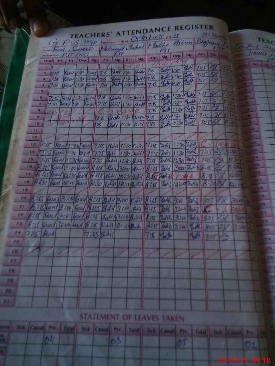 | Total no. of Classrooms: 7 No. of Classrooms Used for Teaching: 5 No. of Classrooms Storing Old Furniture, FTBs, etc: 0Comments if Any: NSB Cash book not maintained for the current financial Year Record not found |
