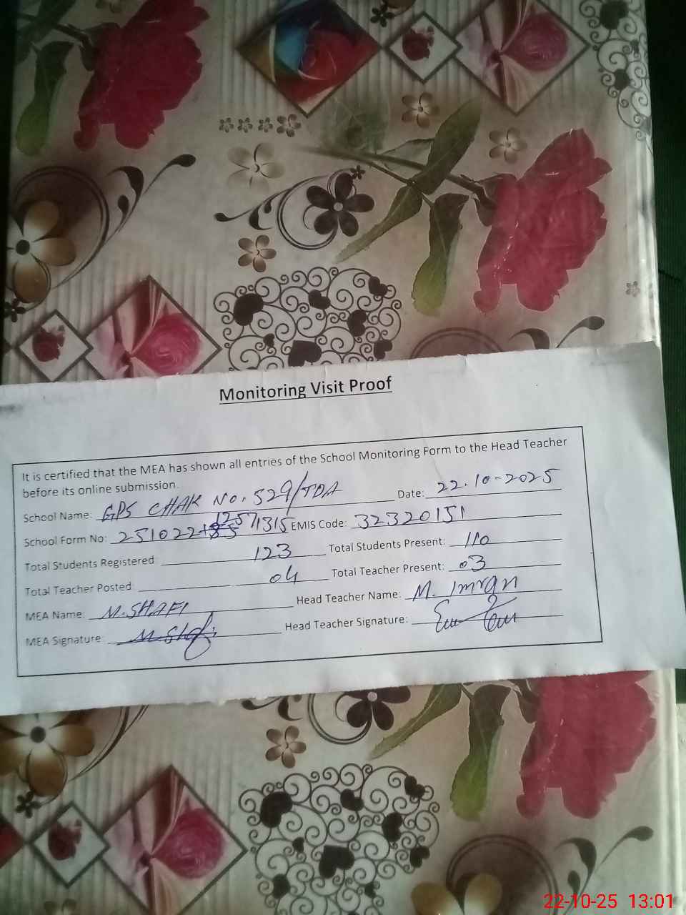| EMIS Code: 32320151 | Name of School: GPS CHAK NO. 529/TDA | |||