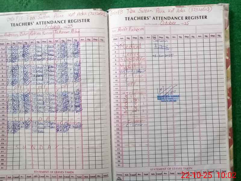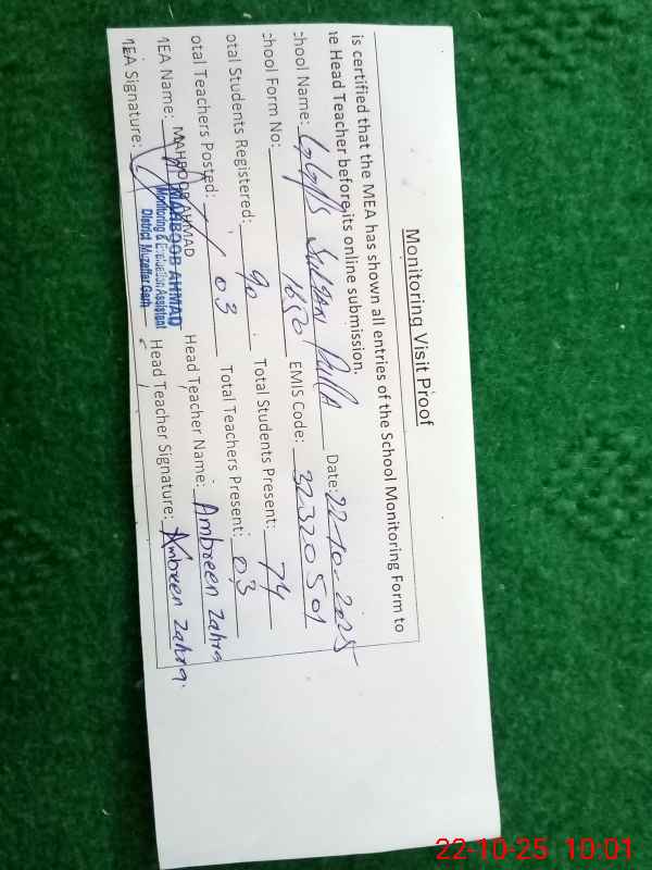 | EMIS Code: 32320501 | Name of School: GGPS TIBBA SULTAN PURA | |||