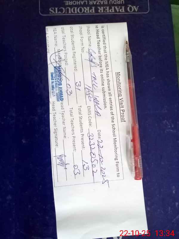 | EMIS Code: 32320502 | Name of School: GGPS TAL WALA | |||