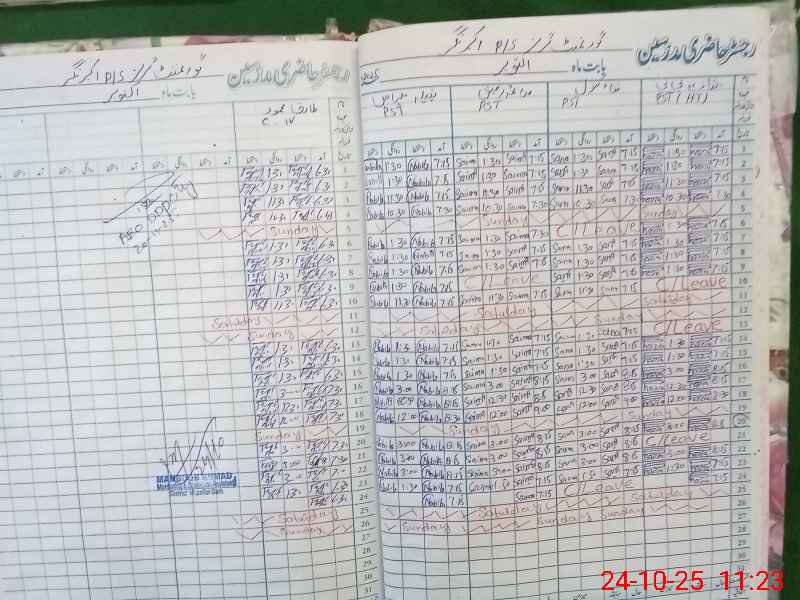 | CNIC | Full Name | Designation | R/C | Absence During Last Calender Month |