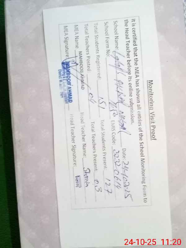 | Certified that this School was Inspected by the Undersigned MEA/DMO Today and the Information Stated Above is as Per Record. | |||||