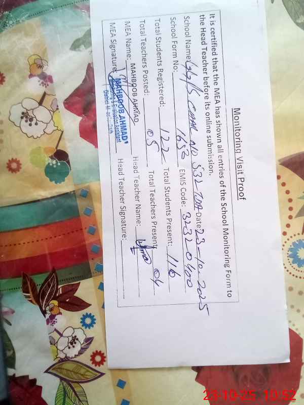 | Certified that this School was Inspected by the Undersigned MEA/DMO Today and the Information Stated Above is as Per Record. | |||||