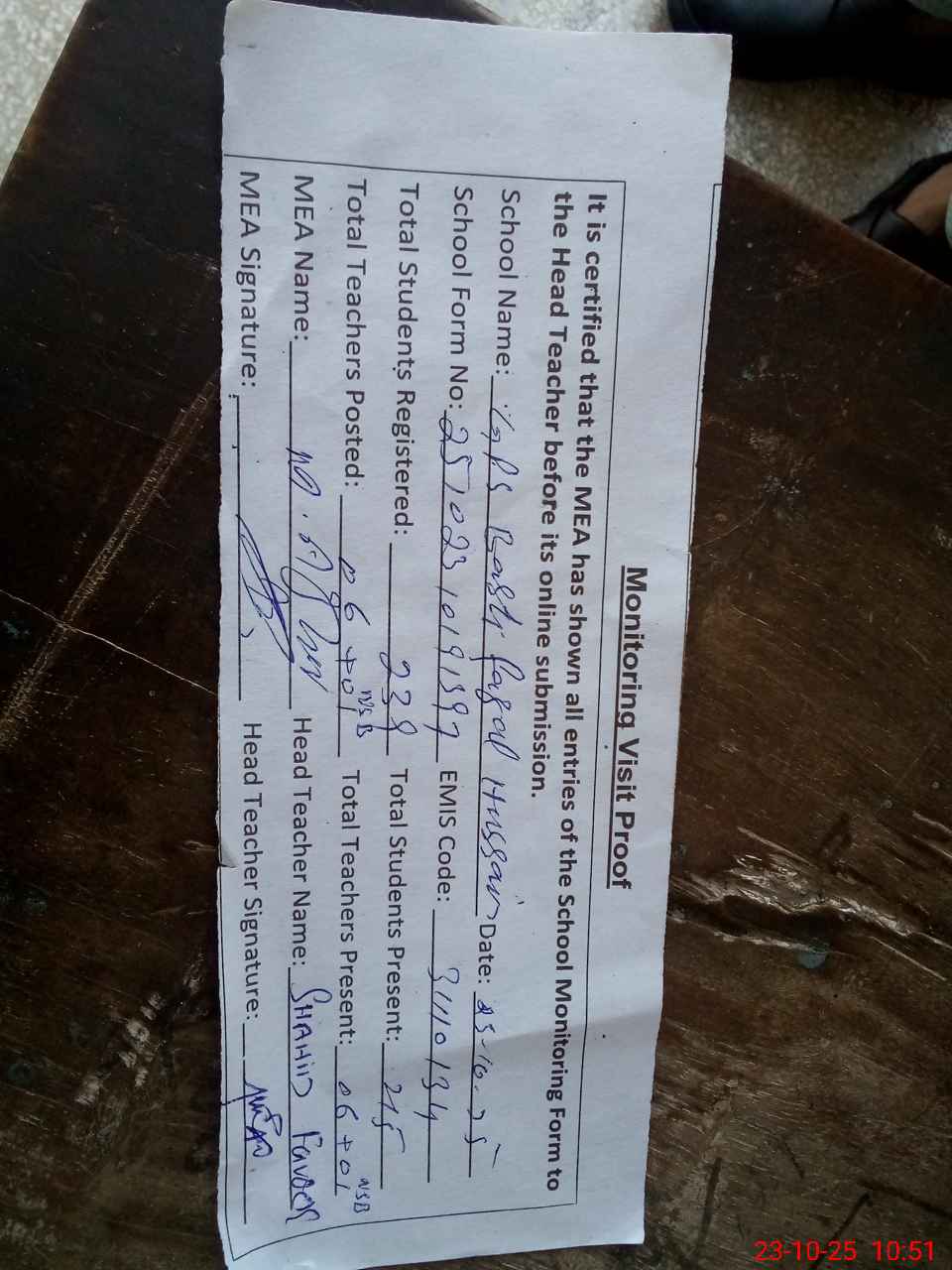 | EMIS Code: 31110134 | Name of School: GPS BASTI FAZAL HUSAIN | |||
