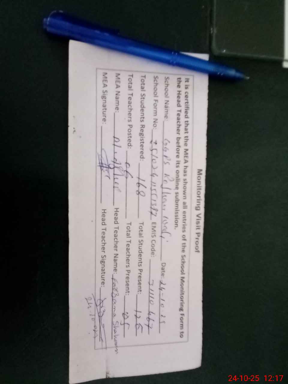 | Certified that this School was Inspected by the Undersigned MEA/DMO Today and the Information Stated Above is as Per Record. | |||||