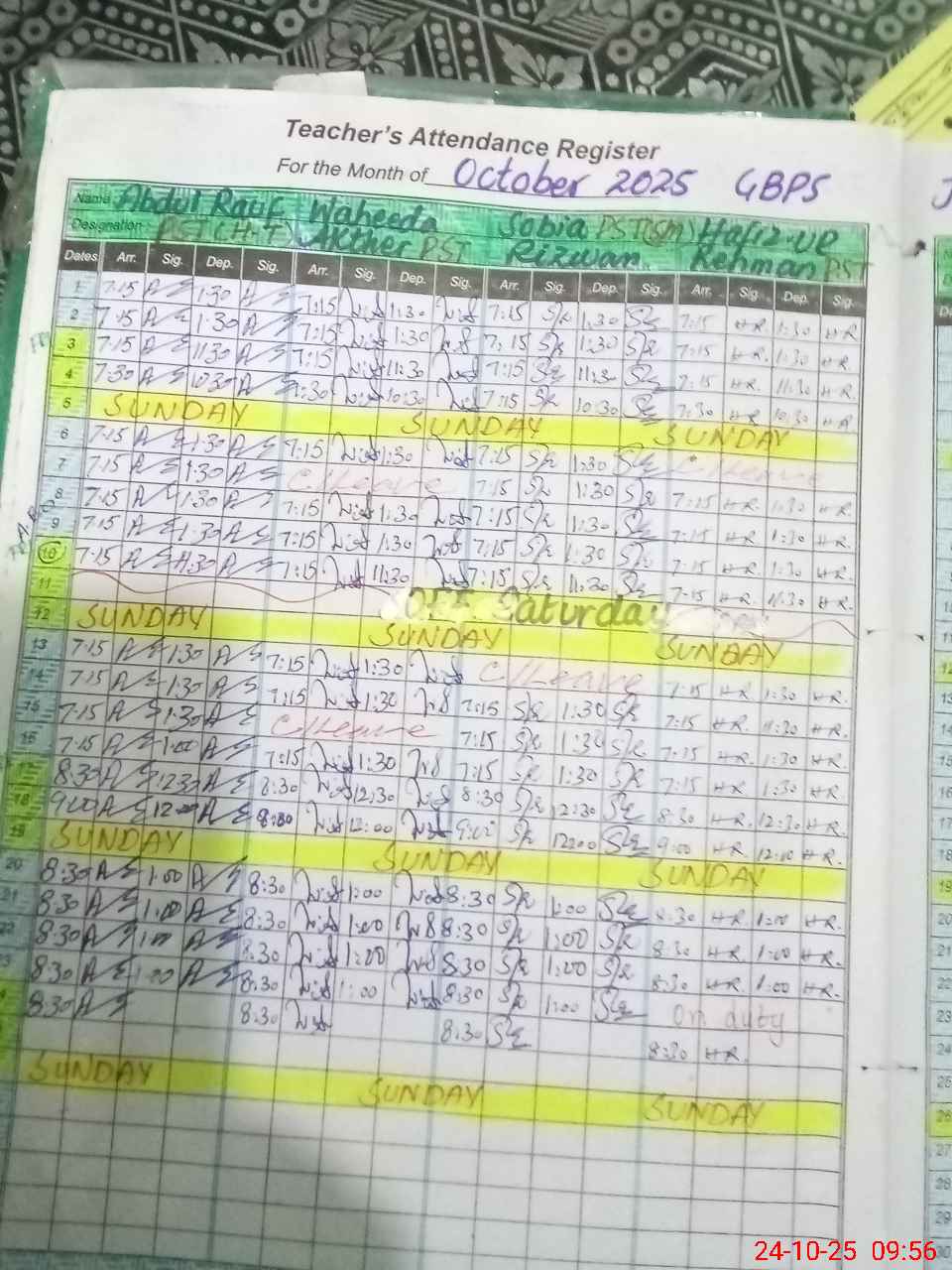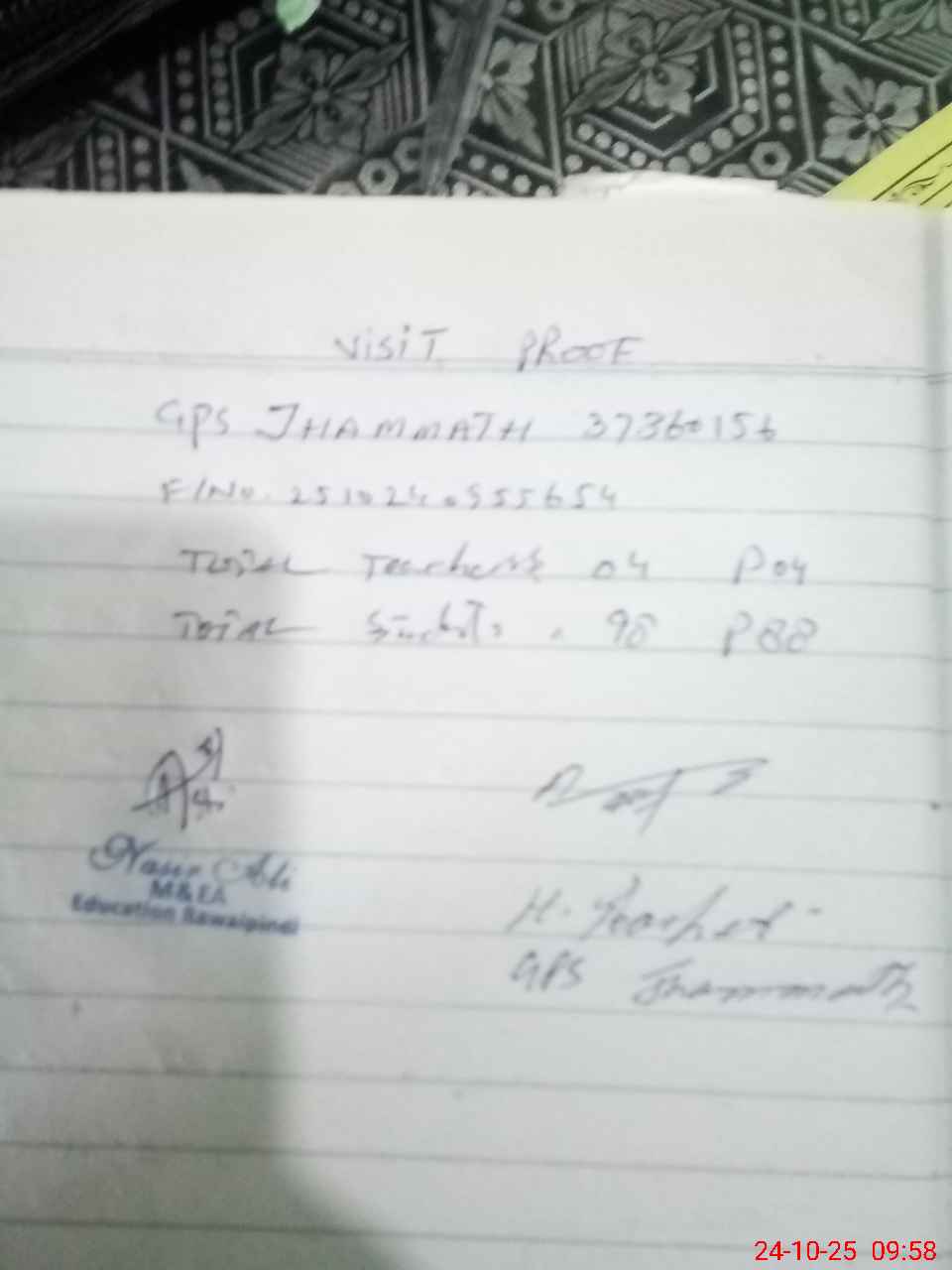 | Name: AB**** RA**** Designation: (School Headmaster's/Headmistress's) PST Phone/Cell Number: 03**** |