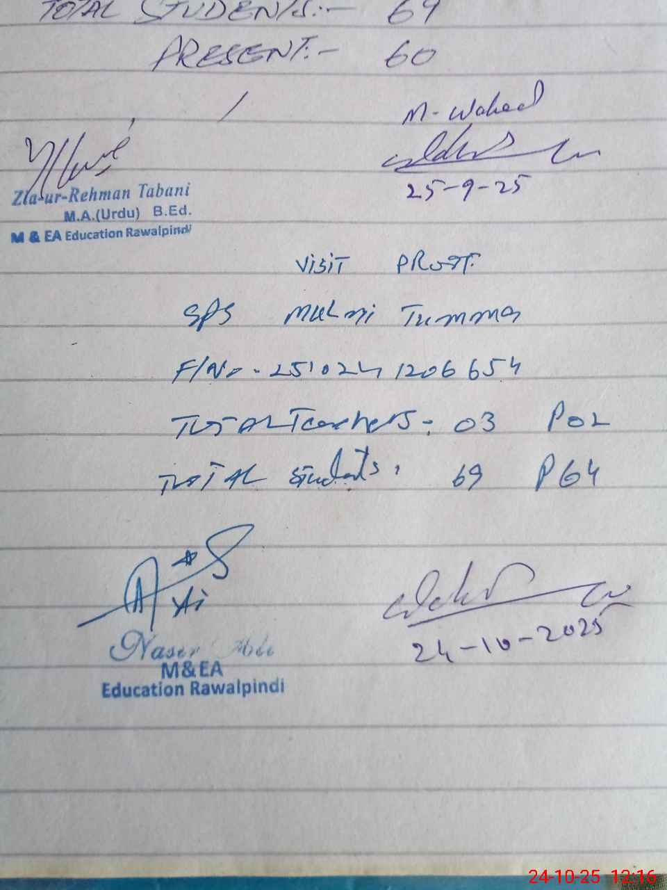 | Certified that this School was Inspected by the Undersigned MEA/DMO Today and the Information Stated Above is as Per Record. | |||||