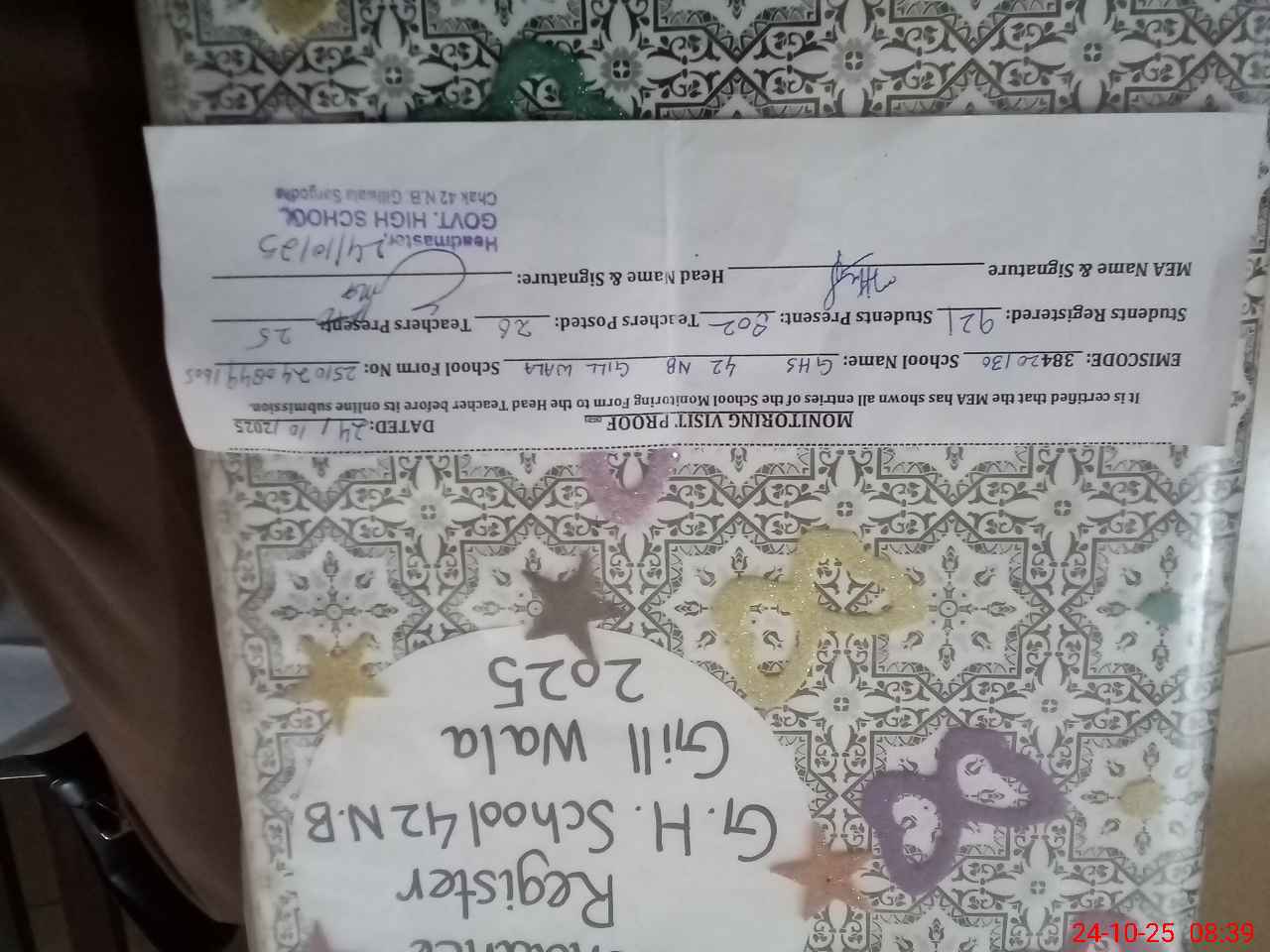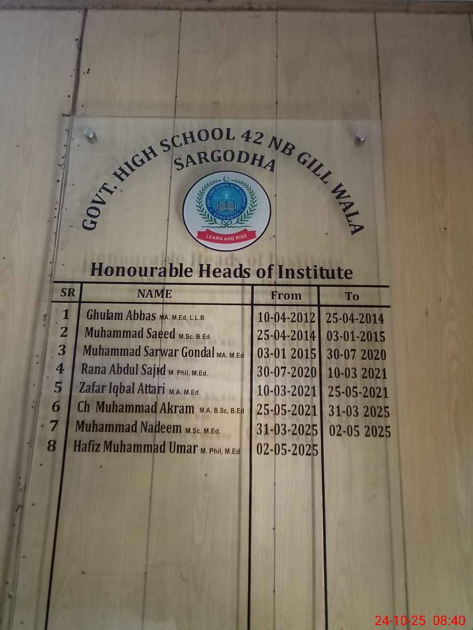| EMIS Code: 38420130 | Name of School: GHS CHAK NO.42 NB GILL WALA | |||