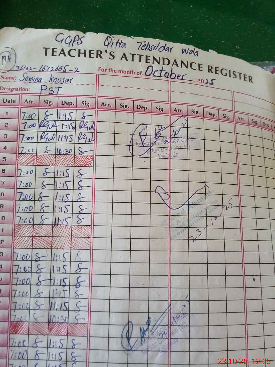 | Name: Sa**** Ko**** Designation: (School Headmaster's/Headmistress's) PST Phone/Cell Number: 03**** |