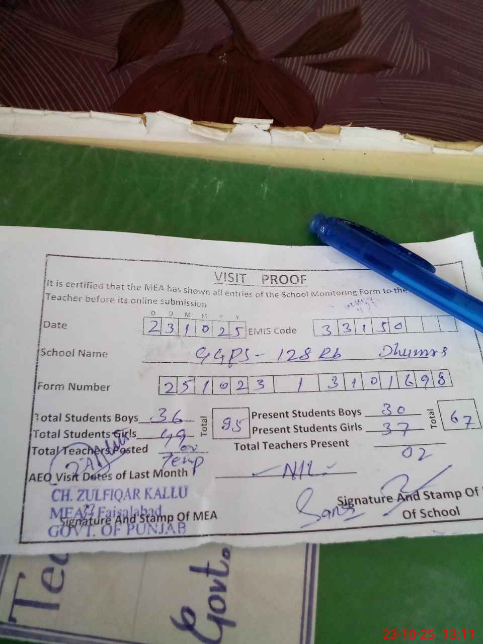 | EMIS Code: 33150129 | Name of School: GGPS CHAK 128 RB | |||