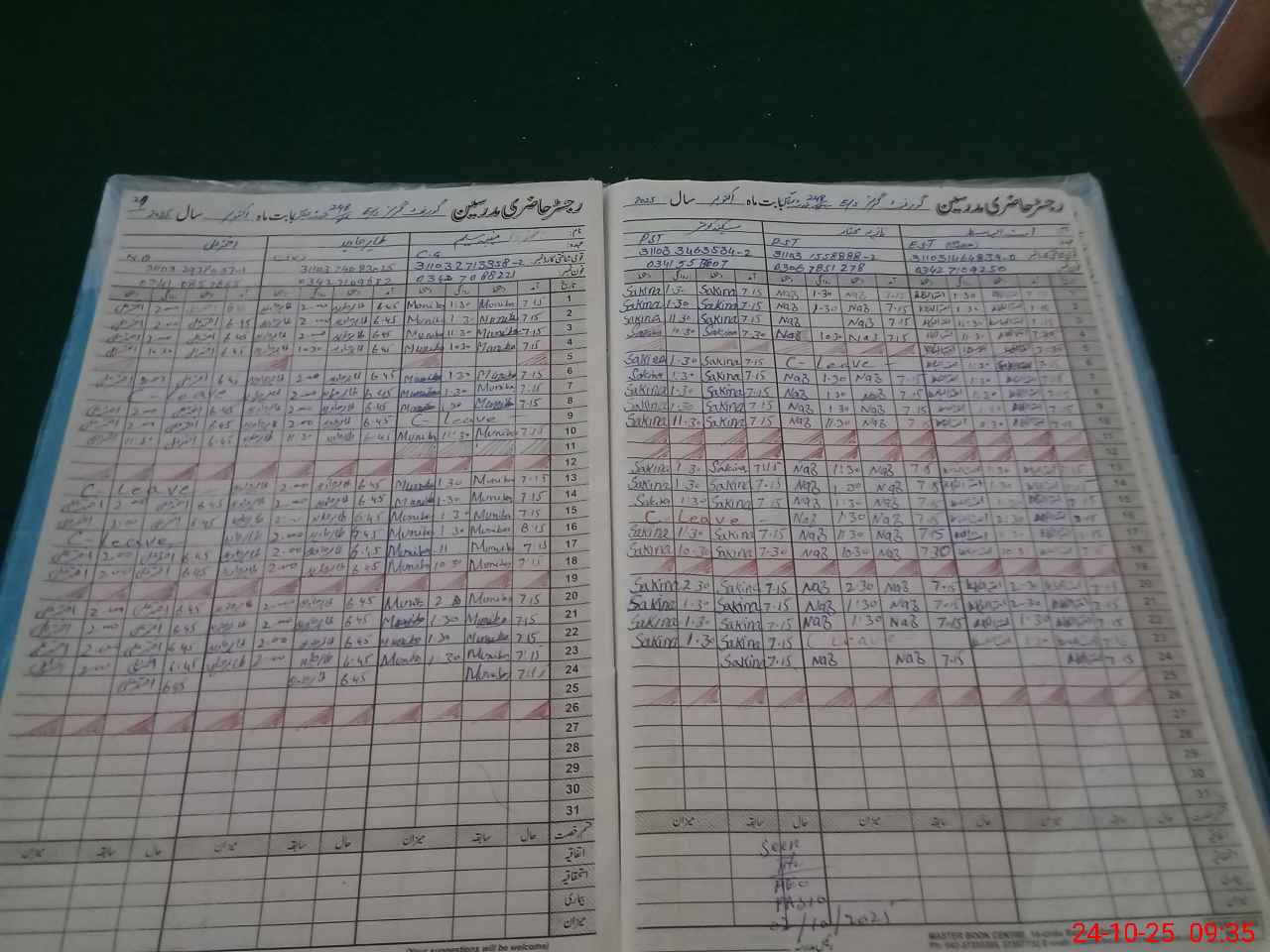 | CNIC | Full Name | Designation | R/C | Absence During Last Calender Month |