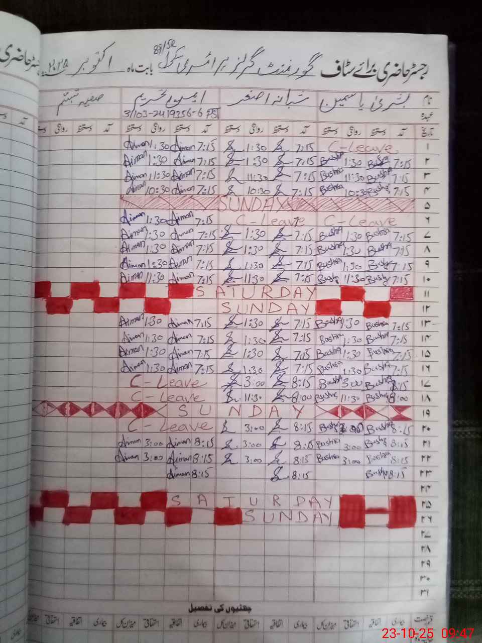 | Leave | Duty | Absent | Maternity | Medical | Ex- Pak |