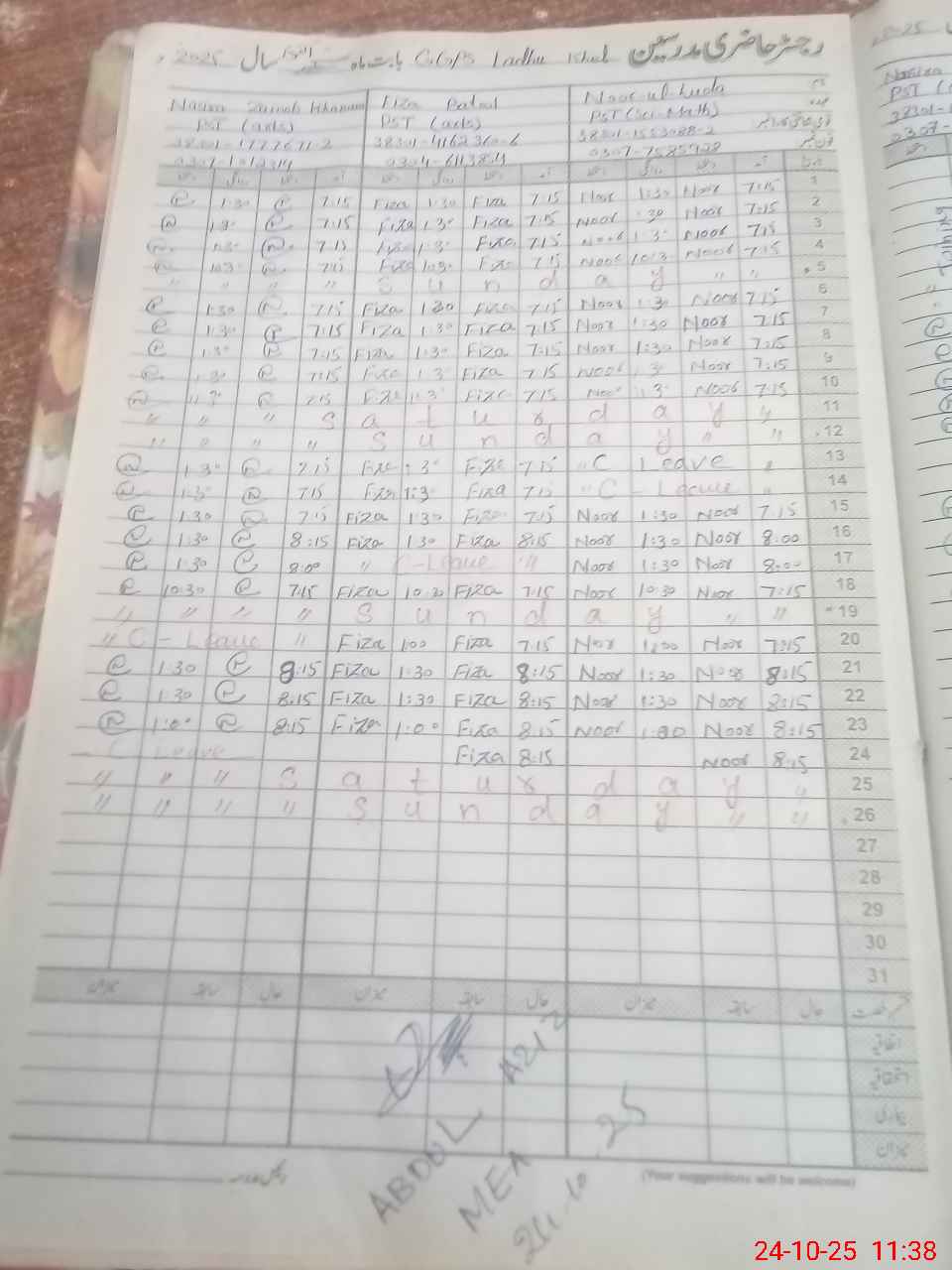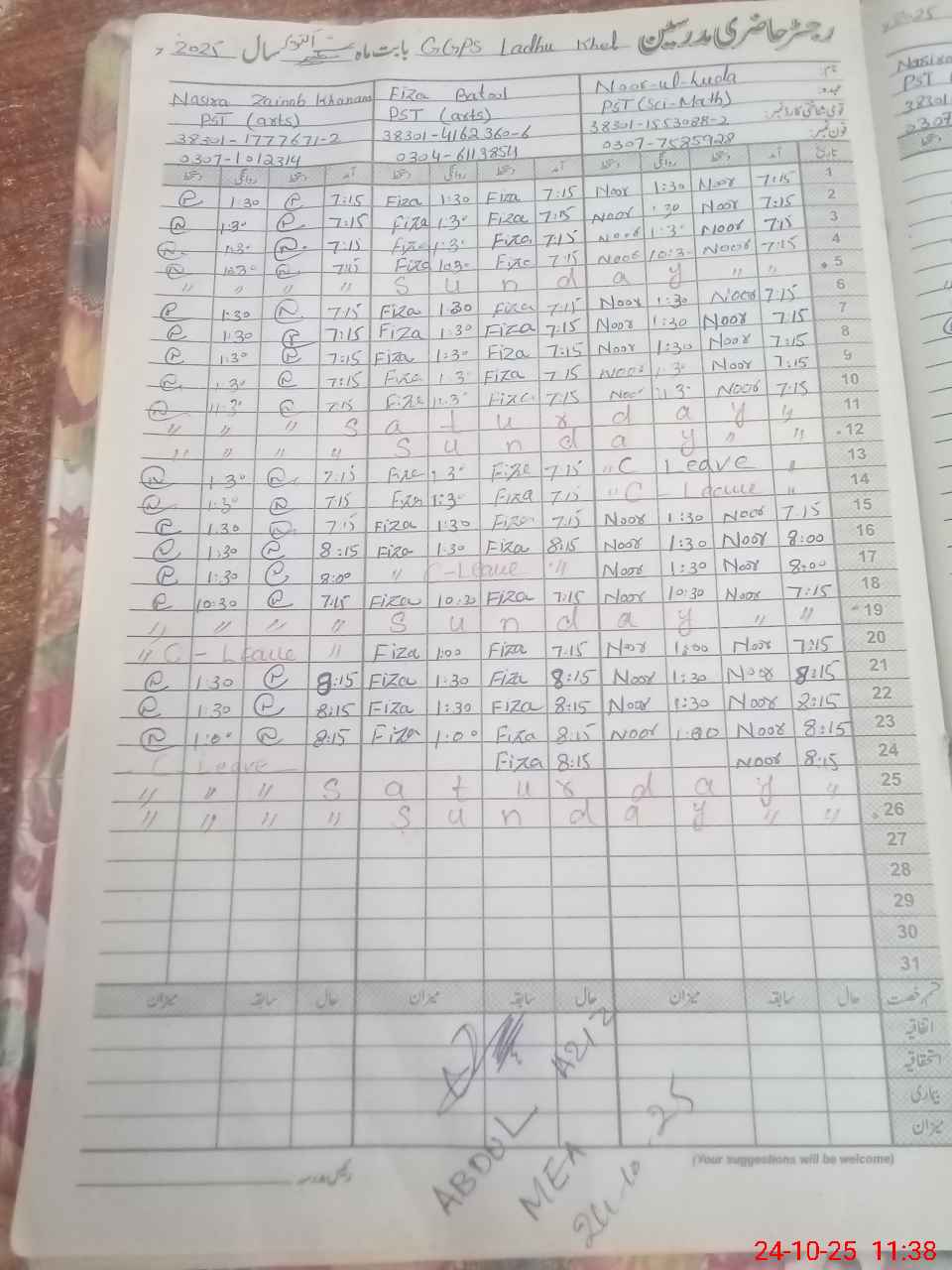 | 38**** | Na**** Za**** Kh**** | PST | Regular | 0 | 0 | 0 | 0 | 0 | 0 | 0 | 0 | 0 | Casual |