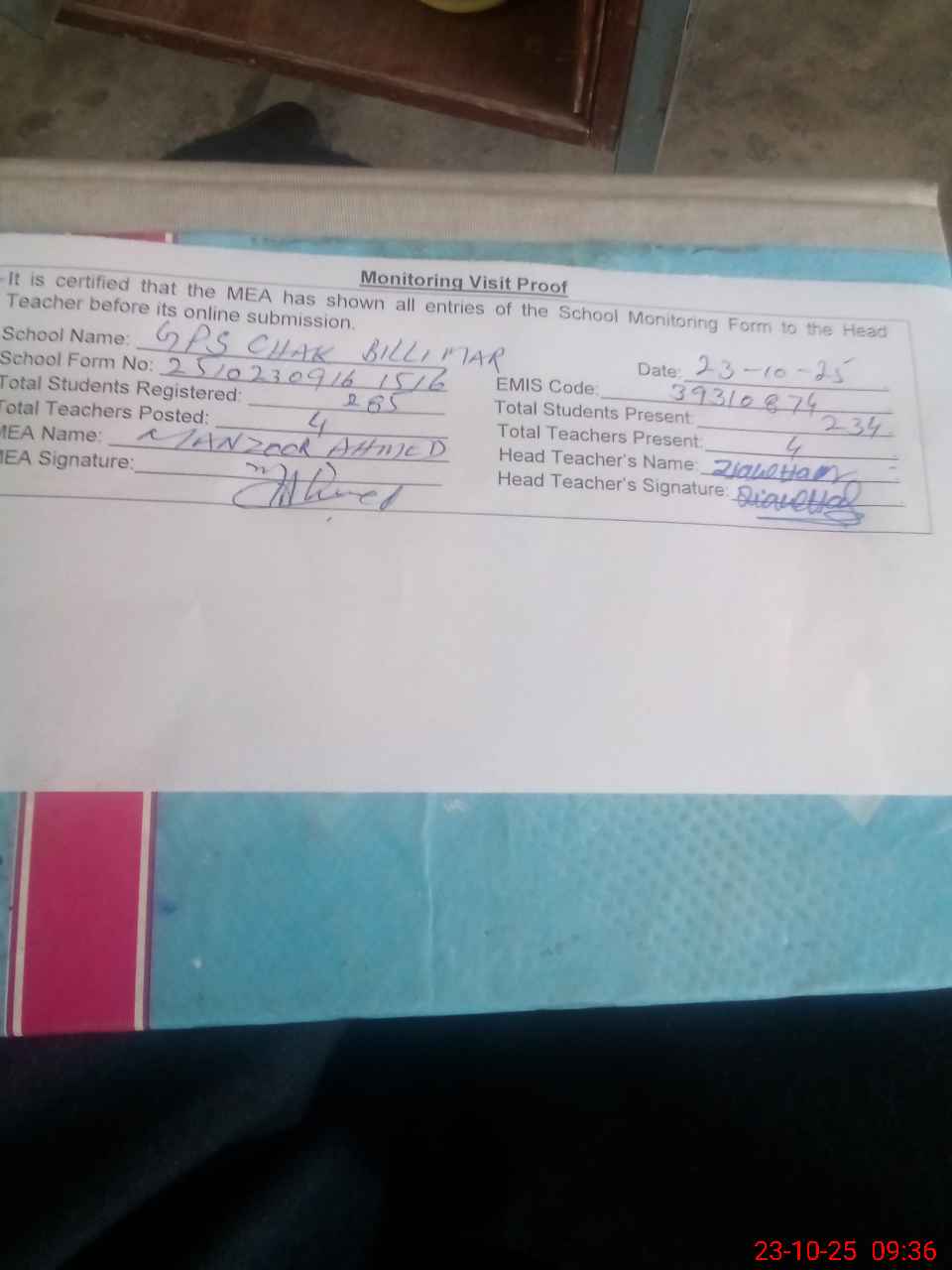 | EMIS Code: 39310874 | Name of School: GPS CHAK BILLI MAR | |||