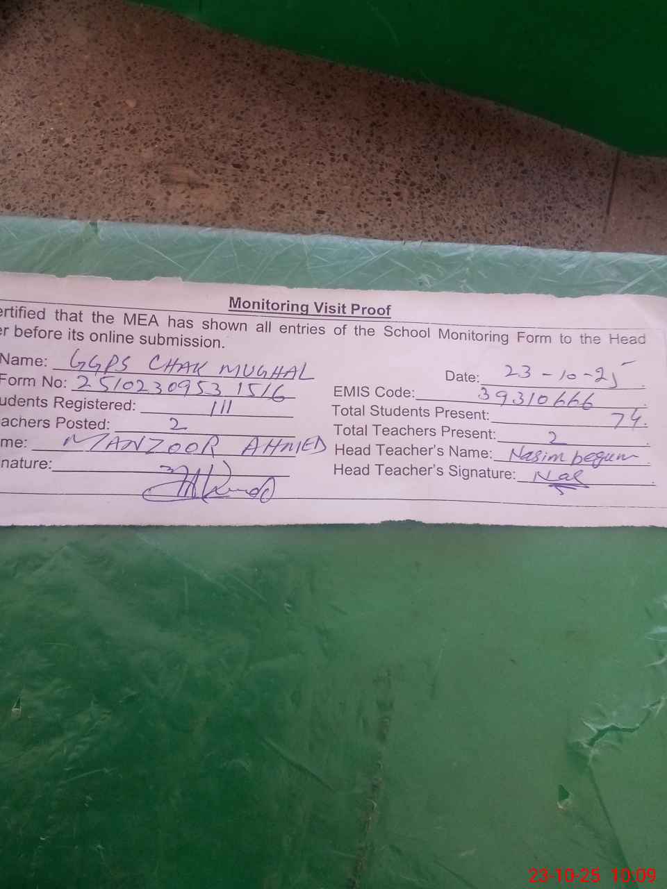 | EMIS Code: 39310666 | Name of School: GGPS CHAK MUGHAL | |||