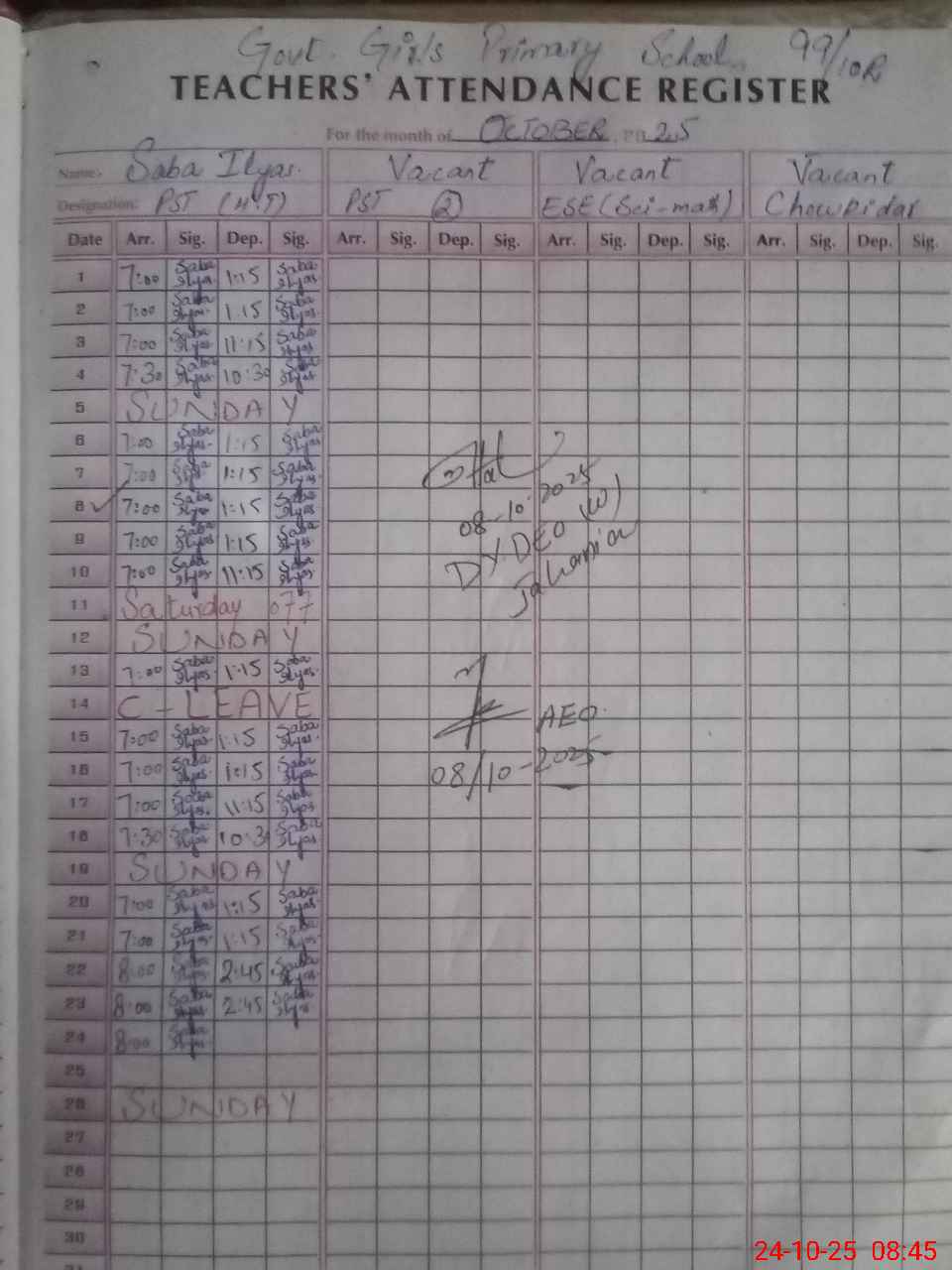 | Name: Sa**** Il**** Designation: (School Headmaster's/Headmistress's) ESE (SCI-MATH) Phone/Cell Number: 03**** |