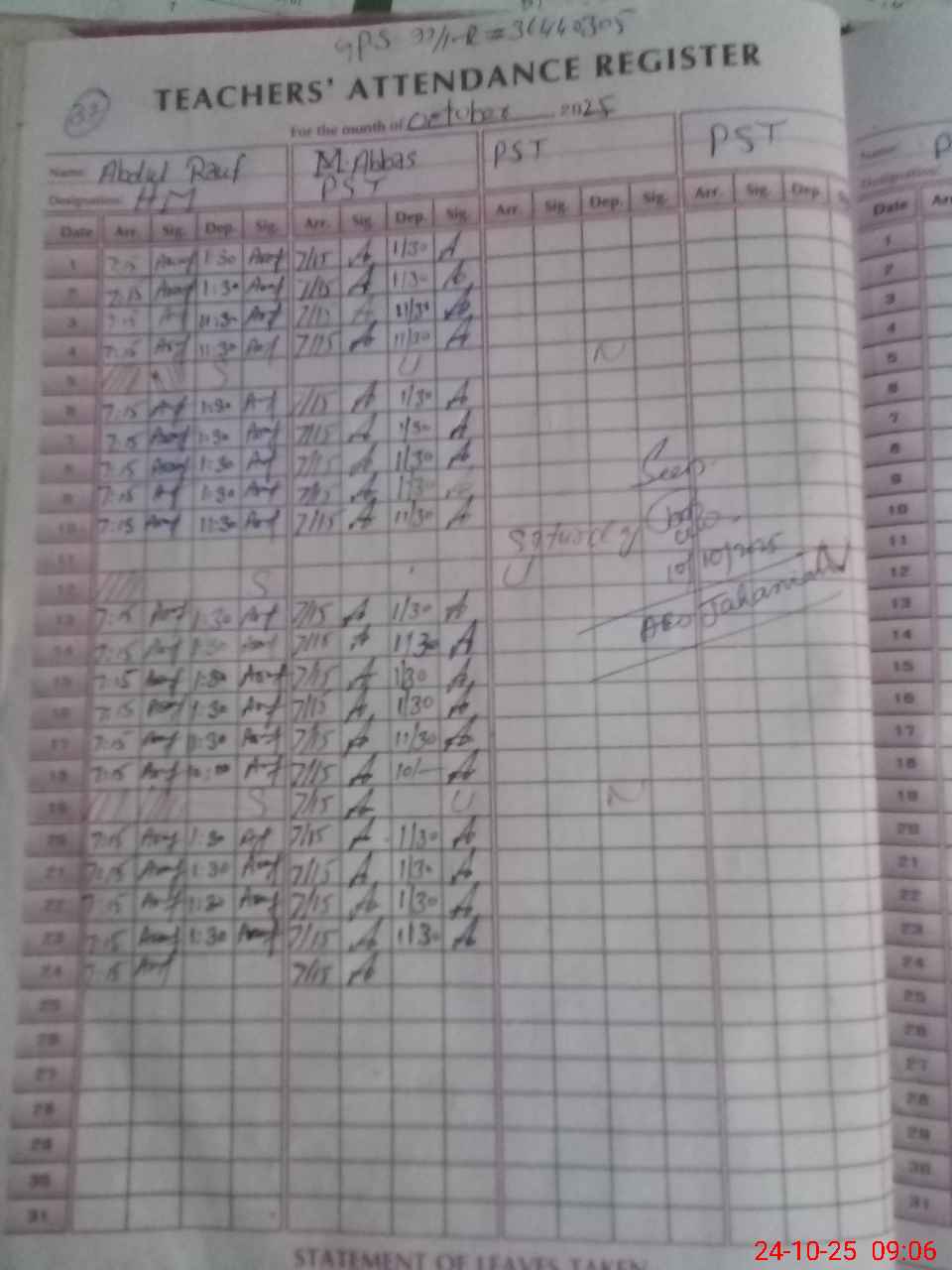 | Name: Ab**** Ra**** Designation: (School Headmaster's/Headmistress's) PST Phone/Cell Number: 03**** |