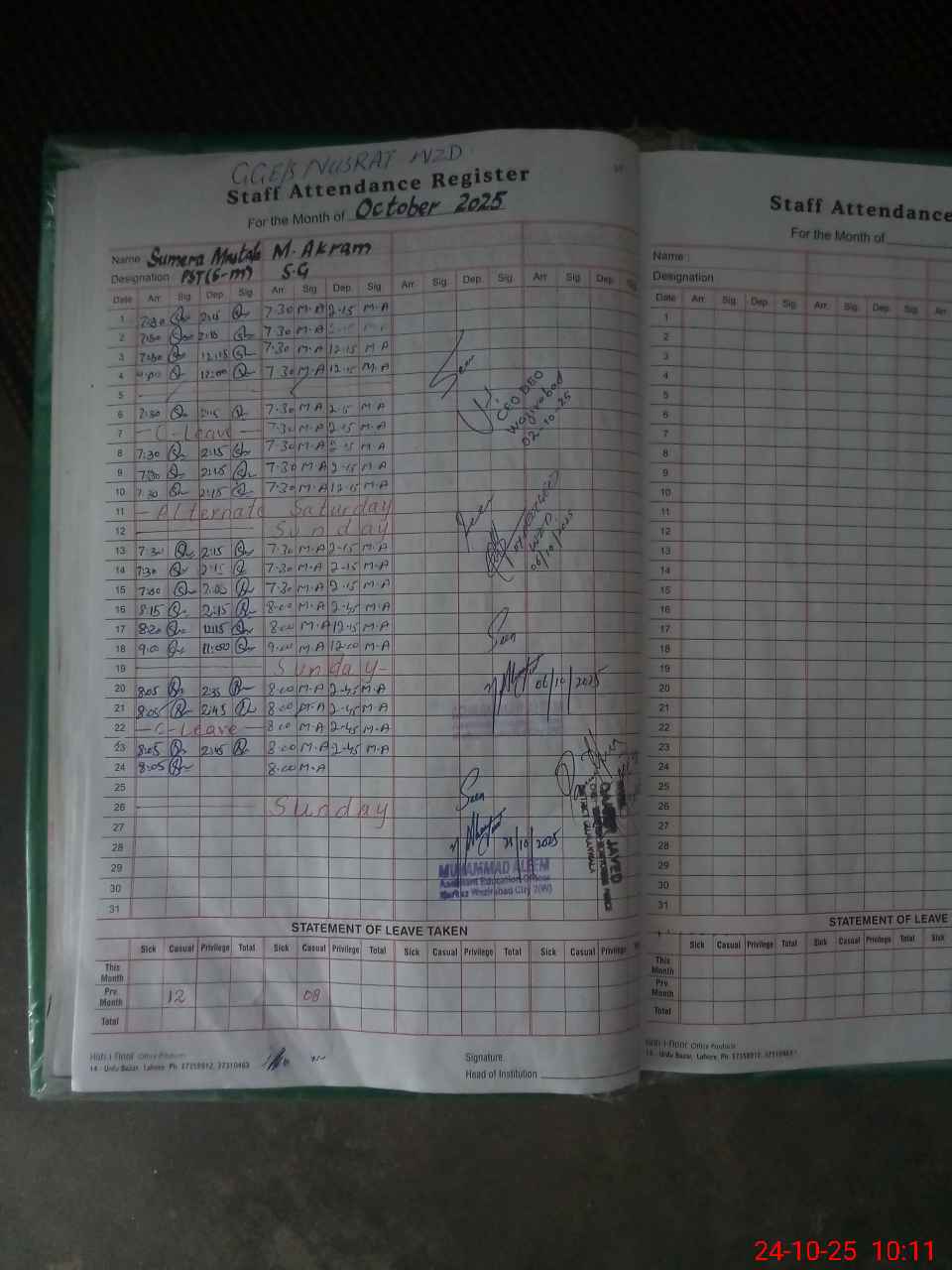 | Remarks (Use Separate Page if Required): Attendence of teachers and students are up to date on sis | |||||