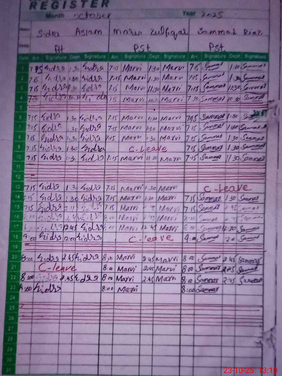 | CNIC | Full Name | Designation | R/C | Absence During Last Calender Month |