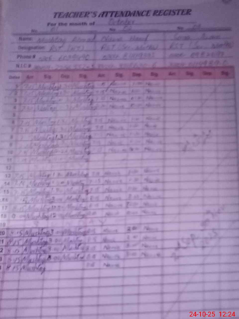 | Name: KH**** JA**** Designation: (School Headmaster's/Headmistress's) PST Phone/Cell Number: 03**** |