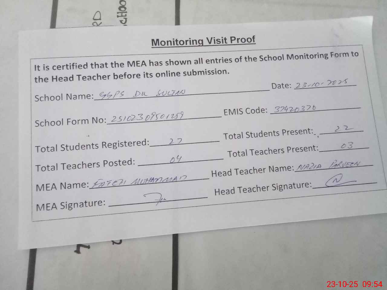 | EMIS Code: 37420370 | Name of School: GGPS DHOK SULTAN | |||