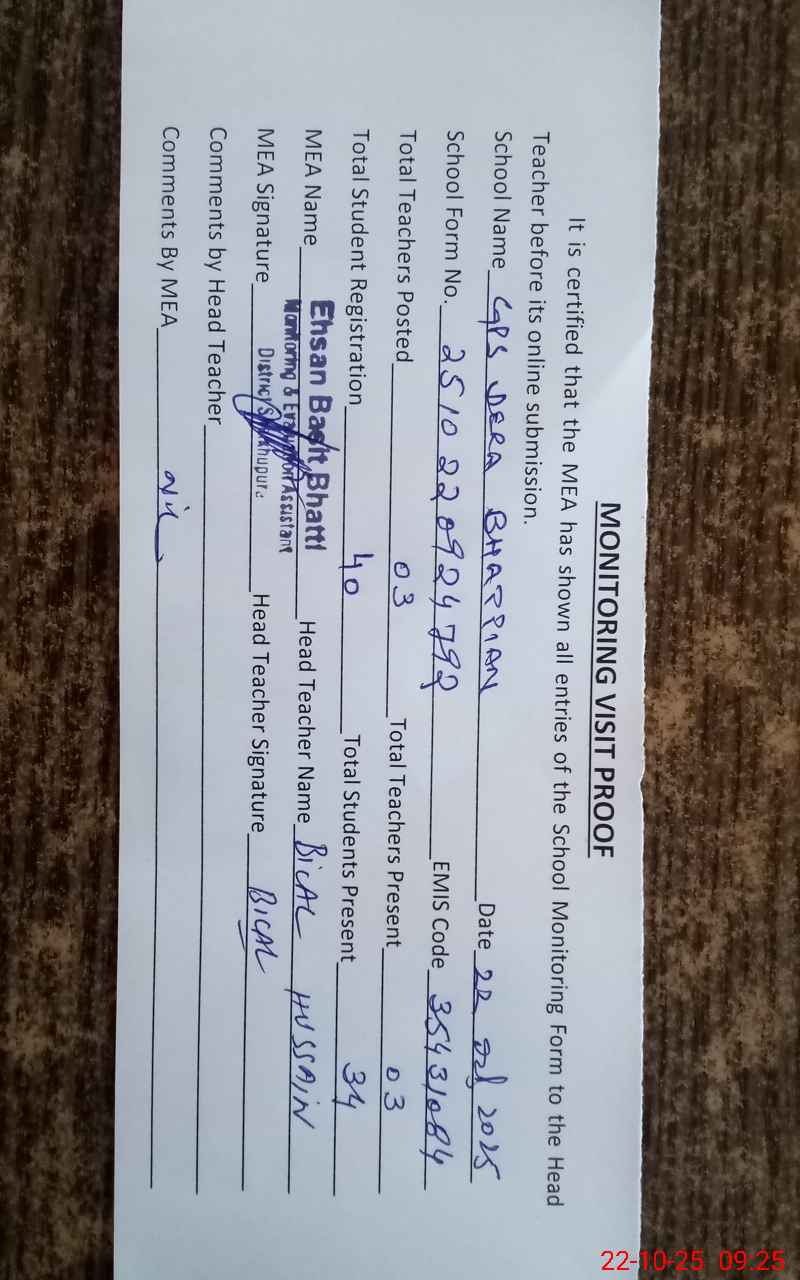 | EMIS Code: 35431084 | Name of School: GPS DERA BHATTIAN | |||
