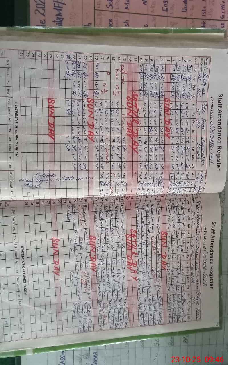 | CNIC | Full Name | Designation | R/C | Absence During Last Calender Month |
